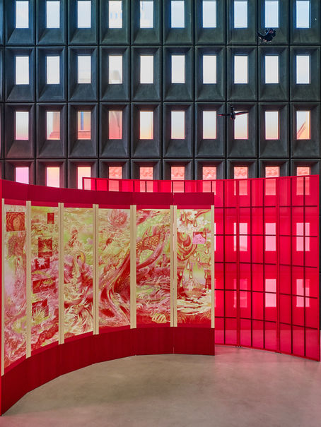 The artist selected six female characters from East Asian folklore, weaving their images and stories into various parts of this folding screen painting. Narratively, these tales are both relatively independent and interconnected, as if presenting different life fragments of the same woman. The painting begins with a crying woman, and ultimately, her falling posture seems to be a journey toward the next life. Their fate floats between tragedy and hope, traversing the cycle of life and death, and also mirrors the trajectory of contemporary Asian women reshaping themselves in the gaps of an uncertain era.